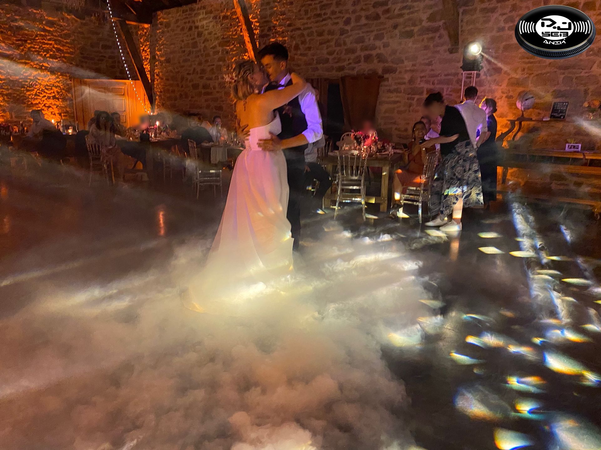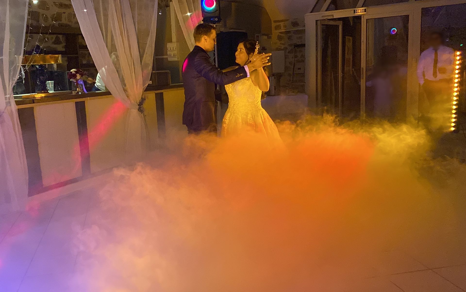 -La fumée lourde pour une première danse des mariés sur un nuage